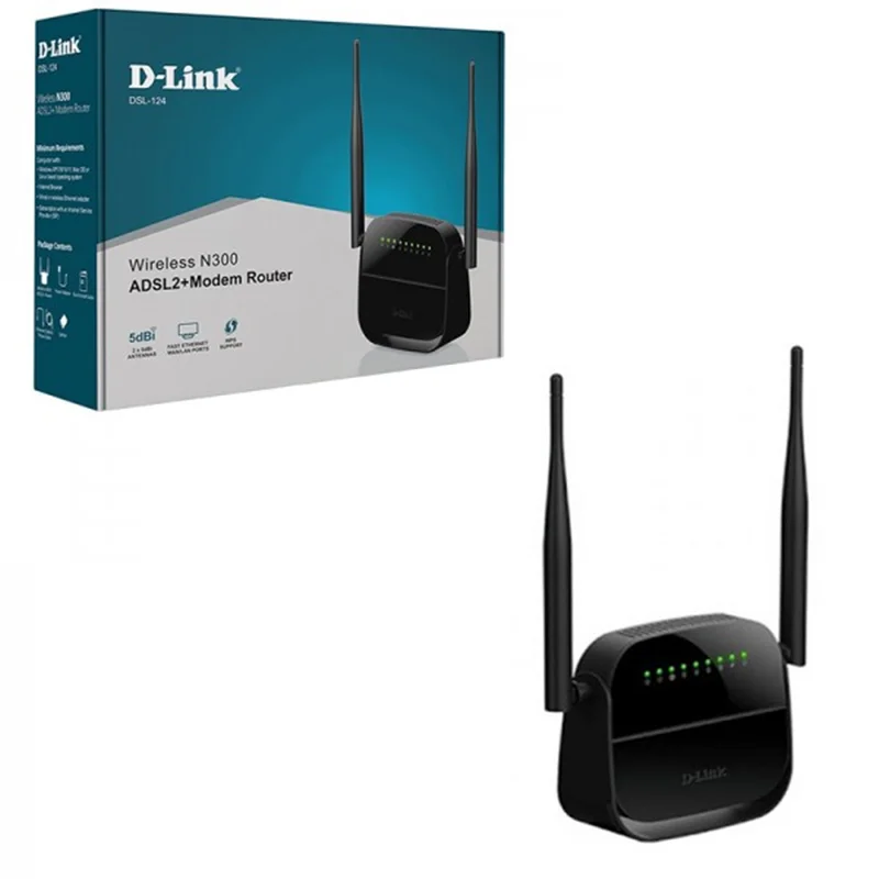 مودم روتر ADSL2 Plus بی سیم N300 دی-لینک مدل DSL-124 New که با نام تجاری D-LINK DSL-124 New ADSL2+ Wireless N300 Modem Router که توسط شرکت D-LINK به بازار عرضه می شود. روتر یا مسیریاب، دستگاهی است که دادههای اینترنتی را در شبکه مسیریابی میکند.در واقع یک روتر دارای چندین اینترفیس یا پورت است که بر روی هر کدام از این اینترفیسها، یک شبکه محلی یا LAN متصل گشته است.تجهیزات شبکه دی لینک برای شرکت های کوچک و خانگی (SOHO) و شرکت های کوچک و متوسط تجاری (SMB) تولید می شوند و این شرکت یکی از بزرگترین شرکت ها در این زمینه محسوب می شود.از مهم ترین ویژگی های مودم قابل حمل دی لینک DSL-124 می توان به ارزش بالای خرید در برابر قیمت پرداخت شده، کارآیی و عملکرد فوق العاده بالا، امکانات و قابلیت های گسترده، کیفیت ساخت بسیار استارندارد، طراحی و ظاهر فوق العاده، فن آوری ایده آل برای برقراری ارتباطات، امنیت جامع و کیفیت خدمات، حفاظت فایروال، کنترل دسترسی کاربر، استاندارد امنیت بیسیم اشاره کرد.